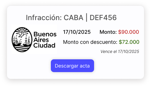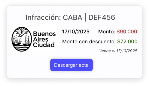 Informes de infracciones con identificación de fotomultas, monto con descuento por pronto pago y acta online. Resolución de trámites generales, consolidando la información clave y facilitando una gestión de flotas más simple y eficiente.
